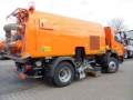 Hydrostatischer Antrieb, Kehrgeschwindigkeit 0-14 kmh,Turbine Stufenlos regelbar, Behälter komplett aus Edelstahl, zusätzliche manuelle Pumpe zum Anheben des Kessels, Gewichtsanzeige, Arbeitsstundenzähler, Kehrstundenzähler und Wasseranzeige (Restmenge 300 l). Automatisches Abschalten der Wasserzufuhr beim Anheben der Kehraggregate und auch beim Einlegen des Rückwärtsganges, akustisches Signal im Fahrerhaus bei Kessel oben, 2 LED Rundumleuchten + 2 LED Arbeits-Scheinwerfer, Schalldämmung im Aggregatraum, rechts/links Kehrwerk, beidseitig aufnehmend, duales Kehrsystem (man kann auf beiden Seiten gleichzeitig kehren), Kehr-Arbeitsbreite: 2300 mm / mit dualem Kehrsystem: 3940 mm, geschobene Tellerbesen mm mit Borsten aus Stahl Ø 700 mm, Tellerbesen Neigung einstellbar (Joystick rechts u. links), Walzenbesen aus gemischten Polypropylen und Stahldraht Borsten L=1500 mm Ø 400 mm, Sprühdüsen Tellerbesen, Sprühbalken vorn durchgehend mit 6 Sprühdüsen, 3 Sprühdüsen auf je Tellerbesen, 6 Sprühdüsen im Saugmund, 5 Sprühdüsen auf der Kehrwalze, Wasseranlage zur Reinigung oberer Saugschacht mit externem Wasseranschluss, Laubgitter in Edelstahl, Fläche ca.2 m², Heben und Senken pneumatisch mit Vibrations-mechanismus, Turbinenrad aus Hardox 700 8 mm stark, Gehäusegewölbe aus Hardox 500 5 mm stark, Wasserdüsen zur Innenreinigung der Turbine, Wassertank 2000 Liter aus Edelstahl AISI 316 im Aufbau integriert, Befüllung über Schlauch mit Rücklaufschutz, Wasserpumpe Wilden, P1, Membranpumpe, trockenlaufsicher, Laubsauganlage am Heck, Rückfahrkamera mit Monitor im Fahrerhaus, PM 10, Halterung für Besen und Schaufel, Kabelfernbedienung -