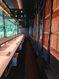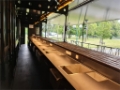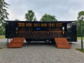 Bar trailer – the trailer has been custom-built as a fully equipped mobile bar, featuring a 10-meter-long bar counter, stylish wooden bottle shelves (each fitted with adjustable RGB LED lighting), three digital screens, ice bins, and cash registers.