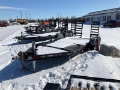 Ball Hitch, Torsion Axle, Surge Brakes, 0 ft Upper Deck, 13 ft 9 in Main Deck, 70 in Usable Deck Width, 73 in Overall Deck Width, Manual Ramps, Steel Decking, 225/75R15 Tires, 12000 lb GVWR