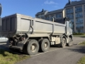 Todella siistikuntoinen ja hyvin huollettu Mersun sorakuorma-auto isoilla massoilla ja paksupohjaisella lavalla.