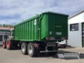 Tandem-Abschiebewagen, 24 to. zul. Gesamtgewicht (davon 4to Stützlast), in serienmäßiger Grundausstattung, Aufbaulänge ca. 8100mm anstatt 7100mm, (nur in Verbindung mit hydr.Federung), fester Bordwandaufsatz (Stahl verzinkt) , bestehend aus Profilrohr 100mm x 80mm für Seitenbordwände bis ca.1000mm vor Aufbauende, hydraulisch aufstellbare Anhäckselklappe, (anstatt mechanische Ausführung), steckbarer Bordwandaufsatz (Alu) 100mm für Großraumrückwand, 2-flügeliges hydraulisches Laderaum-Abdecksystem, angetrieben durch Ölmotoren, bespannt mit einem Netz , (dw.Steuergerät und 3 polige Steckdose 12 Volt erforderlich / nicht, kompatibel mit Aufsatz A 180B & A 190B sowie abklappbarer, Seitenwand, nur in Verbindung mit A 171B), Abschleppvorrichtung am Heck, Kunststoffkotflügel Vorderachse (bei Warntafelpaket erforderlich), verstärkte höhenverstellbare, gummigelagerte Zugeinrichtung, ausgelegt fü