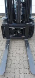 Endkundenbemerkung: vorgebauter Seitenschieber, 4 Ventile mit Schlauchführung für 3. und 4. Ventil, Mast Triplex Hilo FSV - Hubhöhe 4300 mm, 3-Fach mit hohem Freihub, Bauhöhe 2160 mm, Freihub 1550 mm, Gabelzinken 1200 mm, LED Arbeitsscheinwerfer vorne, LED Rückkombileuchte, Blaues Warnlicht nach hinten gerichtet, Panoramaspiegel,