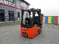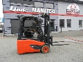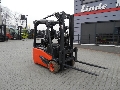 The Blachdeker company offers for sale a used Linde E14-02 electric 3-wheel forklift with a lithium-ion battery, duplex mast and side shift.
