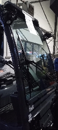 Mechanische Hebel mit Fahrtrichtungsumschalter an der Lenksäule, Halbkabine ohne Türen, Grammer MSG 65 inkl. Sicherheitsgurt orange und Gurtschloss-Überwachung, Treibgasanschluß, CE-Zertifikat, Sonderausstattung: LED Arbeitsscheinwerfer, LED Rückkombileuchte, Blaues Warnlicht nach hinten gerichtet,