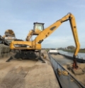 This Cat 325D-MH is equipped with a 6 cilinder water cooled turbo charged Cat 3126AT diesel engine (128kW) with 7843 working hours on the service meter. Boom length 8,85 meters and stick length being 7,42 meters, resulting in a reach of 15,67 meters without grab, height reach of 17,14 meters and debt of 6,42 meters. Full rubber tires, 4 outriggers, cabin protection, extra work lights, camera on the stick, additional books, airco, radio, central lubrication etc.