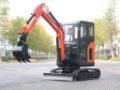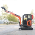 Rýpadlo je vybavené funkciou mimoosého kopania a kabínou
