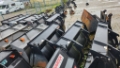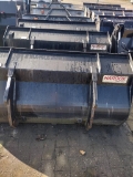 Diverse Ladeschaufeln (mit Zähnen bzw. mit glatter Schneide, Inhalte von 0,8 bis 1 cbm) sowie Palettengabeln (Zinkenlänge 1.200mm) mit Gabelträger (FEM2 und FEM3), passend für das Volvo-Schnellwechselsystem.