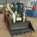 This is a used Bobcat S750 skid steer loader, featuring a vertical lift design and powered by a reliable Kubota/Doosan turbo diesel engine with 63.4 kW output, meeting Tier 3 emission standards. Equipped with ergonomic joystick controls, air-conditioned cab, SMV 标志,and backup alarm for safe operation.