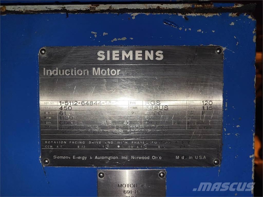SIEMENS RGS 450 hp, 4000 volts, 1180 rpm, 588US Induction Motor Type – Motors Electric Motors AC/DC – AC , 450 hp, 4000 volts, 3-phase , 1180 rpm, 588US , Continuous
